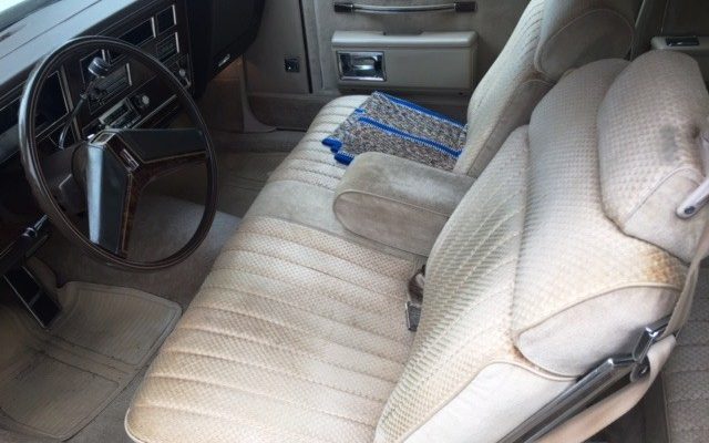 My inlaws bought an ’82 in Dark Rosewood and this color interior ( Camel ? ) with a 350 and 4 speed auto. It had the real high speed rear gears and would easily top 24 mpg with cruise set at 70 ( this was the 55 mph era ). We took it to Ohio and were cosseted by the roomy and luxuriously comfortable interior on a 2400 mile round trip. It was a heavy feeling yet nimble ride. When he passed I attempted to buy the low miler from the estate, but my other inlaws would have no part of it and sold it to a neighbor woman in their church. For 1500 less than my offer of 3500. I would have kept it in my collection as a token of good memories had with he and his wife…. instead it got ran into the ground in several years. Rusted, dented, and now with a filthy interior I saw it a month ago in the hands of a young guy working at a fuel stop; and I cried once more for an opportunity lost because of jealousy.