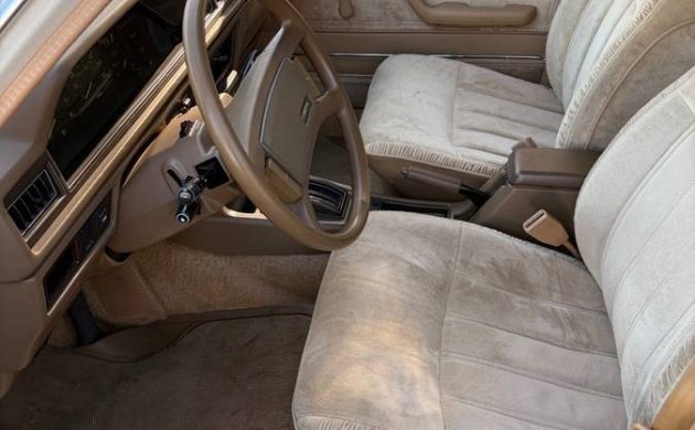 The Luxury Edition Corona received velour-cloth upholstery on bucket seats, faux woodgrain trim, and a host of options not available for the base model. This example has air conditioning, cruise control, and a tilt steering wheel. The window sticker mentions the “Elegante package”, a dealer-installed dress-up kit. This package usually featured a 1/4 vinyl top with coach lights, a hood ornament, and special alloy wheels, though buyers could opt for some or all of these items.