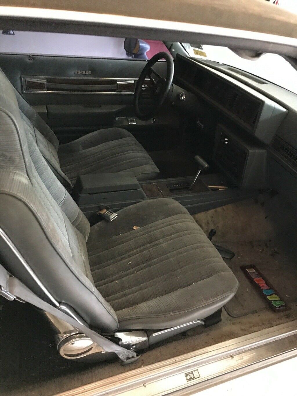 Looks pretty beat up to me , apparently can’t get it running, what did he try? I see no 442 badging, but he calls it a 442 Brougham , though I am no expert on mid 80s “performance” vehicles Maybe a Cutlass Brougham ?? Bought in TX, been in MO, and now in GA It’ll take some ( a lot??) of work, but will be a nice looking car when finished