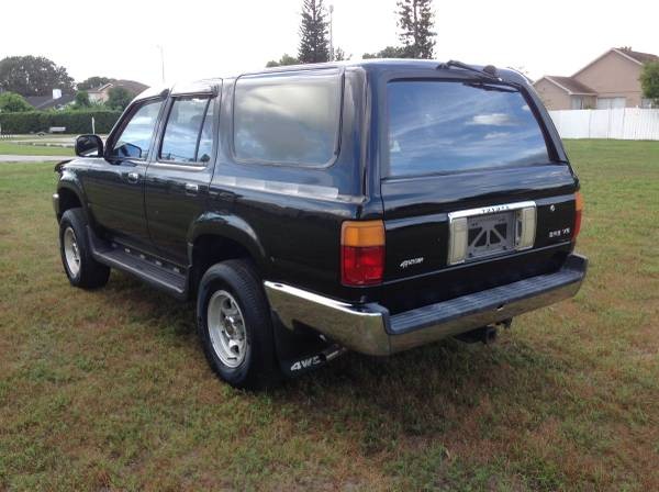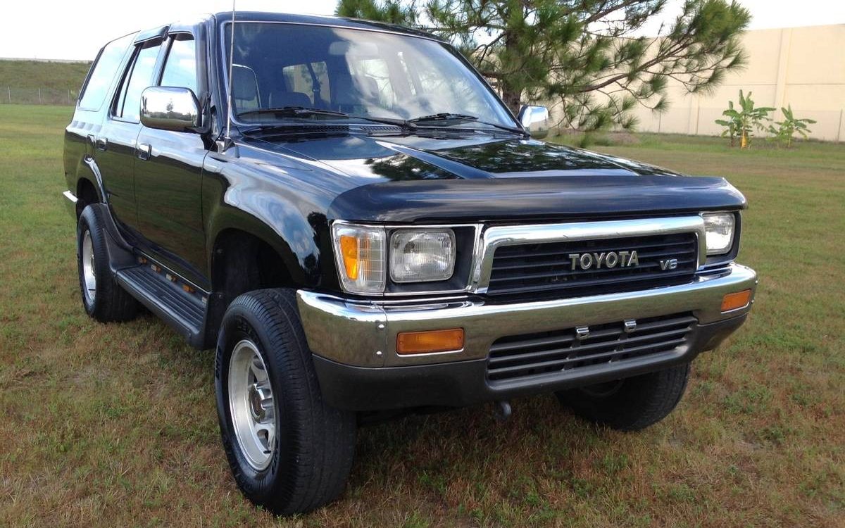 Yours truly was a victim of one of Toyota’s failed head gaskets when, after owning a ’95 4Runner for less than three months, I suddenly noticed a massive puddle of fluid underneath my truck while at a gas pump one day. I’ve owned more than a few Toyota’s over the years and I consider myself a ‘Yota guy through and through, but since that experience, I made a vow to only purchase trucks with 22R motors! Those who live in the Northeast like I do know it’s just about impossible to find a vintage Toyota truck or 4Runner that doesn’t look like the remains of an old shipwreck. It’s tough to be choosy when shopping for one of these old rigs around here. This Sunshine State 4Runner is certainly tempting to someone used to seeing these vehicles in an advanced state of deterioration in spite of the fact that it’s got the V6 instead of the 22R. The original black paint looks super glossy and extraordinarily well preserved despite a few stone chips and a ding or two. I’m not too crazy about the lighted running boards and it’s evident they could use a good dose of Mother’s Back to Black. The other complaint I have is with the choice of wheels. Yes, they show some pitting but that doesn’t bother me nearly as much as the fact that they don’t appear to be the original Toyota-designed slotted rims that helped enhance the signature look of these trucks.