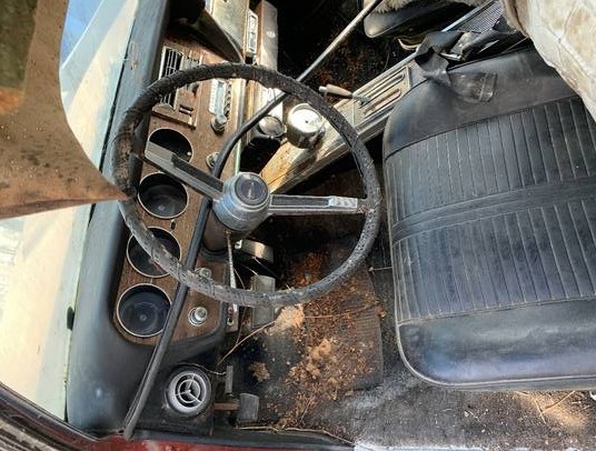 The body and interior look rough and the seller indicates there is rust to be dealt with without indicating how much and where. We’re assuming the car started out burgundy in color (there are traces of blue, too), but its badly faded or covered by grey primer. No photos are provided of the inside of the trunk, engine compartment or undercarriage, so the car’s physical condition is bit of a mystery. The only thing we can attest to about the interior is that the driver’s seat looks okay, but the carpet is shot.