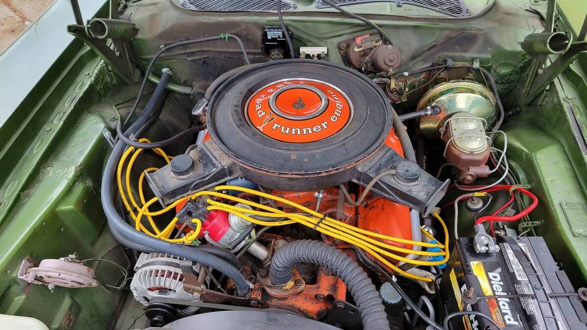 The Road Runner peaked in popularity in its second year, at more than 81,000 copies. Insurance companies began to realize the liability these cars presented, so as rates went up, demand went down. By 1971, even with an all-new look, Road Runner production was down to just over 14,000 units. A little more than half, or nearly 8,000 copies, came with a 383 cubic inch V8, 4-barrel carburetor, and 3-speed TorqueFlite automatic transmission, as in the seller’s car.