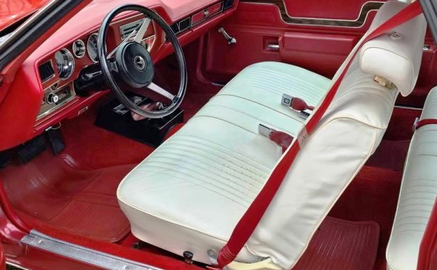 Here’s a beauty. The original owner thought this one out. Double firethorn with white bench and red accents. Perfect combination of features. I’m wondering if they ordered that steering wheel, too. Sure beats that horrible 2-spoke.