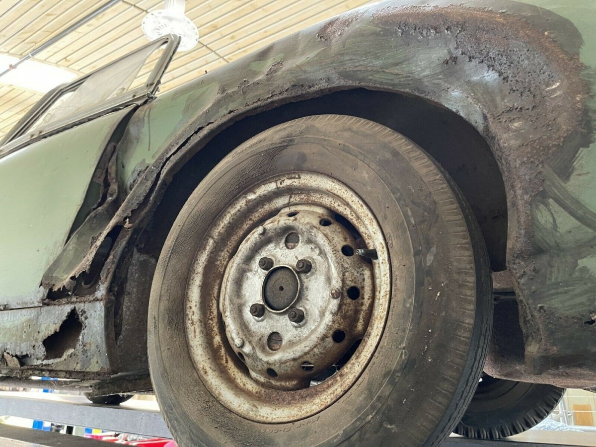As you can see, in addition to the massive dent, this panel is hiding all sorts of secrets. The Sprit was purchased and titled on March 14, 1961, and remained in the same family ownership ever since. The seller is located in Branford, Connecticut, so it seems likely this is a long-time New England car that was driven like any other daily driver and put away wet once the family was done with it. The original color is noted as being Leaf Green, which is a great look for one of these cars. What do you think: is this Bugeye worthy of being restored, or is it destined to be a parts car for the next owner?