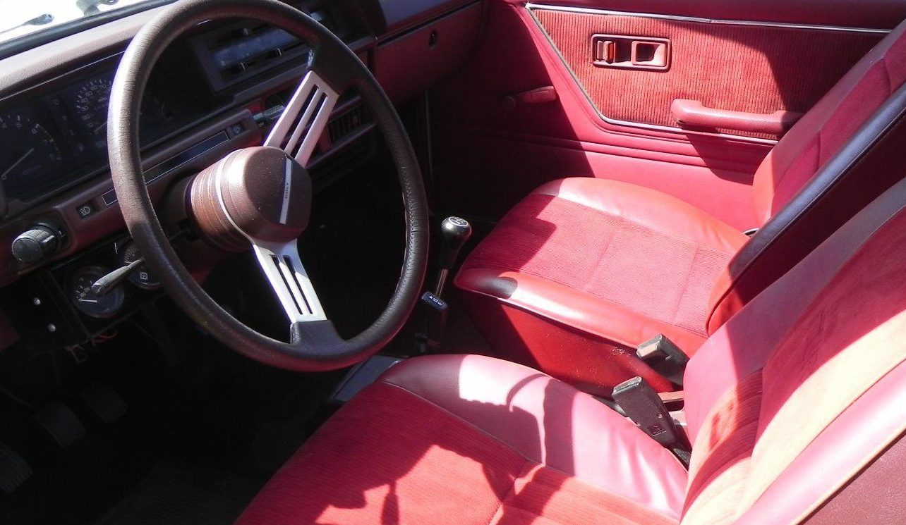 Wow, Jeff great find! I had one of these! I bought it non-operable “as is” for $700 and had it running with a $35 timing belt. It was my wife’s first car of her very own. It was silver but otherwise the same red interior with twin-stick and same graphics. It was the ultimate Pittsburgh city car. Manual steering and brakes communicated road feel brilliantly. Super-light controls. I must have taught 10 people to drive stick on that car. My wife put 30,000 miles on it one year alone. Loved that turbo whistle as you eased up hills.