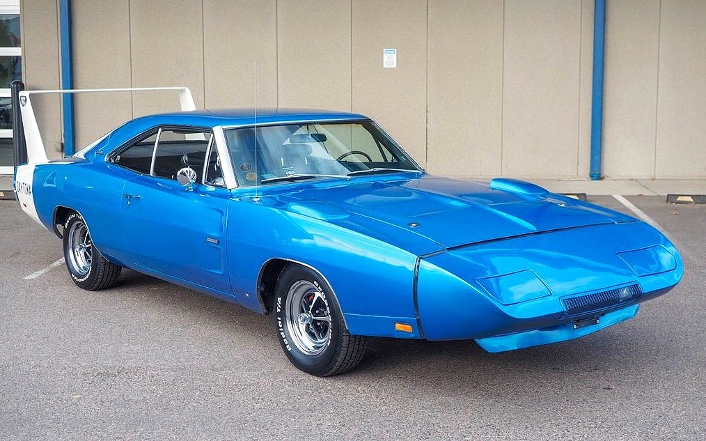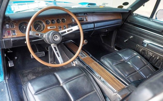 The good news doesn’t stop with the 426 status here either, as not only does the exterior appear to remain in excellent condition, but the seller believes this might be the only Hemi Daytona originally painted in B5 Bright Blue Metallic. He also speculates it could be the only remaining car that still falls into the one-owner category, as it’s being sold on consignment by the family of the original buyer, a man named Bob Kerbsat. Apparently, Bob was also a racing fan himself, as he added a Buddy Baker sticker on each side of the wing, the famed NASCAR driver who first broke the 200 MPH barrier at Talladega behind the wheel of a 1969 Charger Daytona.