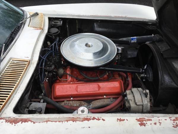 The engine is either the 250 or 300 horsepower version. The ad doesn’t say and I don’t know how to tell the difference without knowing the block stampings. It is said to be the matching numbers engine which is a big plus. Much of the ignition shielding is missing but at least the original valve covers and breather are intact. There are no pictures of the undercarriage and the owner makes no claims regarding the condition of the frame. Since the car is in NY state, it would be a good idea to put the car on a rack and give the underside a thorough inspection before handing over any cash. Anyone out there looking for a C-2 restoration project?