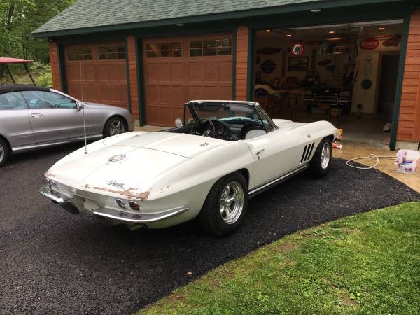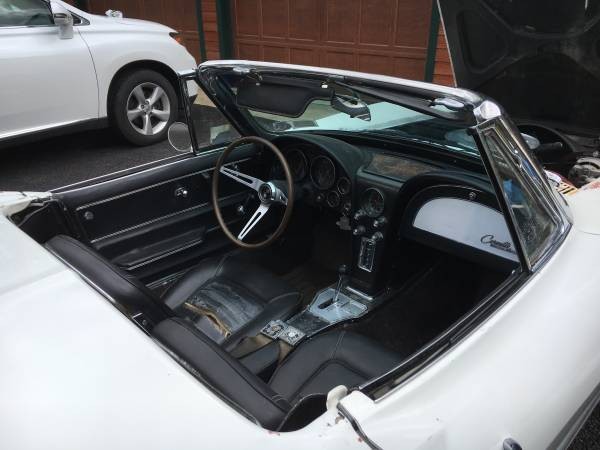 This is a pretty basic Corvette. It has the one of the lower horsepower engines and an automatic transmission. There are no accessories such as power steering, power brakes, power windows, or air conditioning. There is no hardtop shown in any of the pictures and the ad doesn’t mention one. It does have a radio and heater! The custom wheels seen in the photos will not go with the car. It will be sold with the original wheels and hub caps.