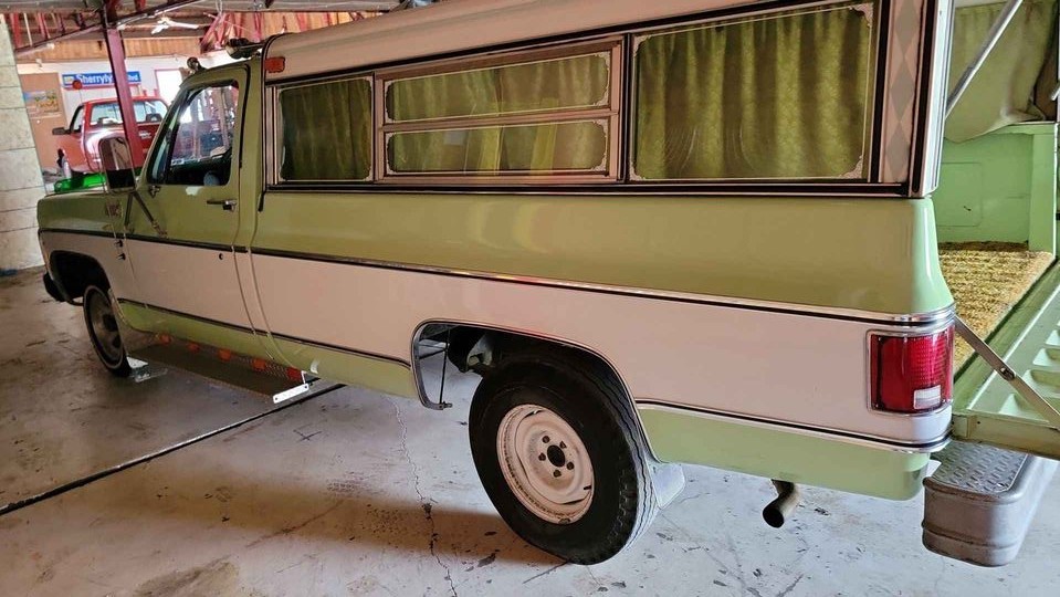 This one-owner, 1976 Chevy pickup, wearing two-tone Lime Green/White paint, looks like a nice survivor. And it has a topper and curtains for some weekend camping adventures. It’s part of GM’s C/K series of trucks that were built between 1960-02 throughout just four generations. Located in Ashland, Kentucky, it’s available only as trade as the seller is looking to get his hands on a nice rat rod. As such, no price is listed here on Facebook Marketplace.