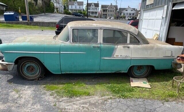 Ah, that brings back memories. We had a ’55 4-door, same color as this one, but no two-tone. It had a 265 with Powerglide, and we christened it “Green Dragon”. It shared the driveway with our blue ’53 Chevy, known as “Blue Betsy”.