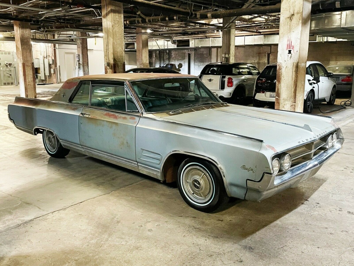 The rear-wheel-drive Starfire was Oldsmobile’s personal luxury offering until the front-wheel-drive Toronado assumed those duties in 1966. While it shared most of its sheet metal with other full-sized Olds models, the Starfire wore unique trim and luxurious interiors – and had more than ample power under the hood. This 1964 edition has been dubbed a barnyard find likely because of where it was discovered by the seller. It ran briefly while being prepped for sale, but it’s going to need further mechanical and cosmetic attention. Located in Los Angeles, California, this Starfire is available here on eBay where the no reserve auction has reached just $1,175. Thank you, Larry D, for this cool tip!