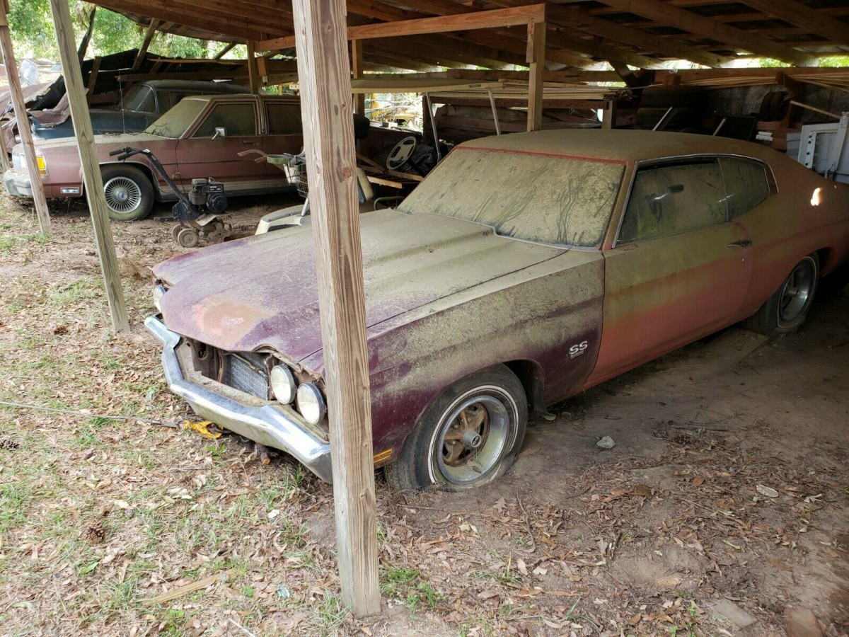 There are a handful of cars that define the muscle car movement of the ‘60s and ‘70s and the 1970 Chevelle SS 396 is one of them. Hugely popular then with nearly 50,000 units sold new in 1970 alone, the SS 396 continues to be highly sought after today. This one appears to have been languishing in an open shed for a number of years and the seller wrestled it away from the original owner’s widow. It’s located now in Dothan, Alabama and available here on eBay where 16 bids are up to $10,100. And the reserve is still waiting to be met.