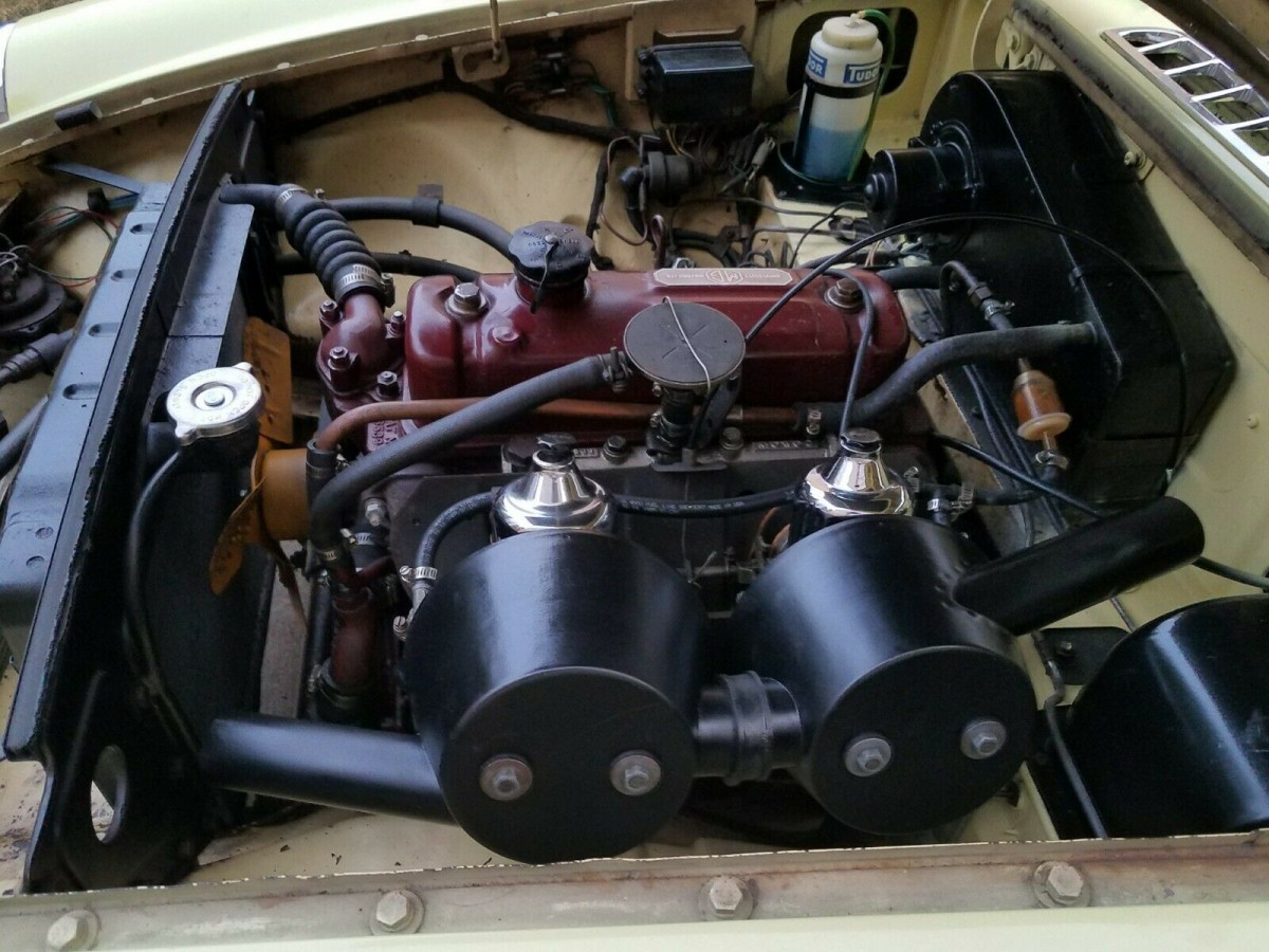 I guess that there had to be a down-side to the MG, and we have now reached it. The interior is original, and some parts of it are showing its age. The seats are the most obvious, and these will need new covers. The originals are leather, and if the buyer chooses to preserve the originality, it will cost them. A set of vinyl covers in the correct color will cost $400, but you can up that price to $850 if the leather is preferred. The carpet is worn and faded, and a new set will lighten the wallet by $210. The other visible fault is a crack in the wheel. This could be restored, but high-quality reproductions can be found for $280. Otherwise, the remaining trim and dash look pretty respectable for a survivor. The original radio doesn’t make noise, and the needle on the temperature gauge is stuck, but everything else inside the MG is said to work as it should.