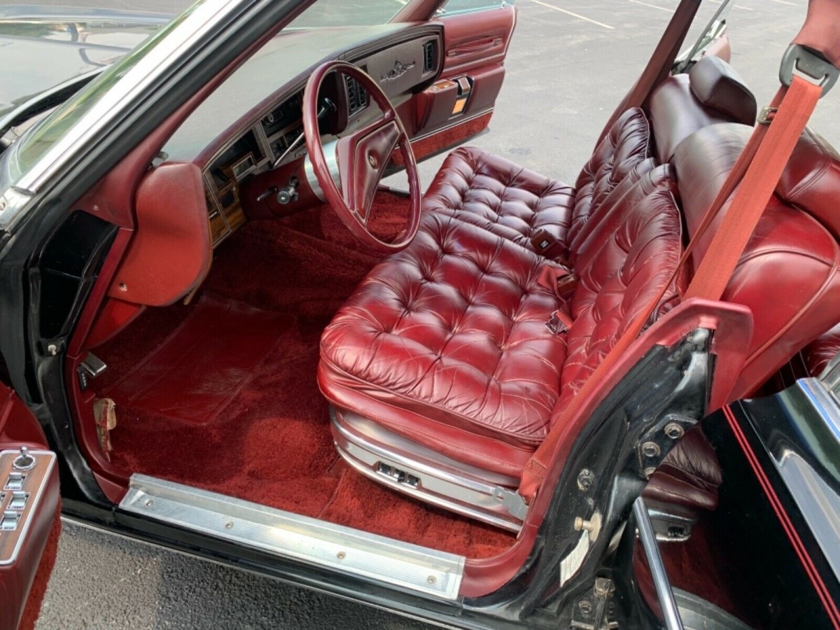 There appear to be no issues with the body and Turbo Black paint. But if you look hard enough, you’ll find little things like a paint chip here, a slight dingy there, and the occasional scratch. Open the doors and you’ll find a sea of red leather upholstery that looks to have withstood the test of time and miles. The car naturally has factory air conditioning which we’re told blows ice cold. This automobile is a throwback to days gone by, ones filled with large, opulent, and gas-guzzling cars. The ’75 Imperial would make a great car for a retro limousine service!
