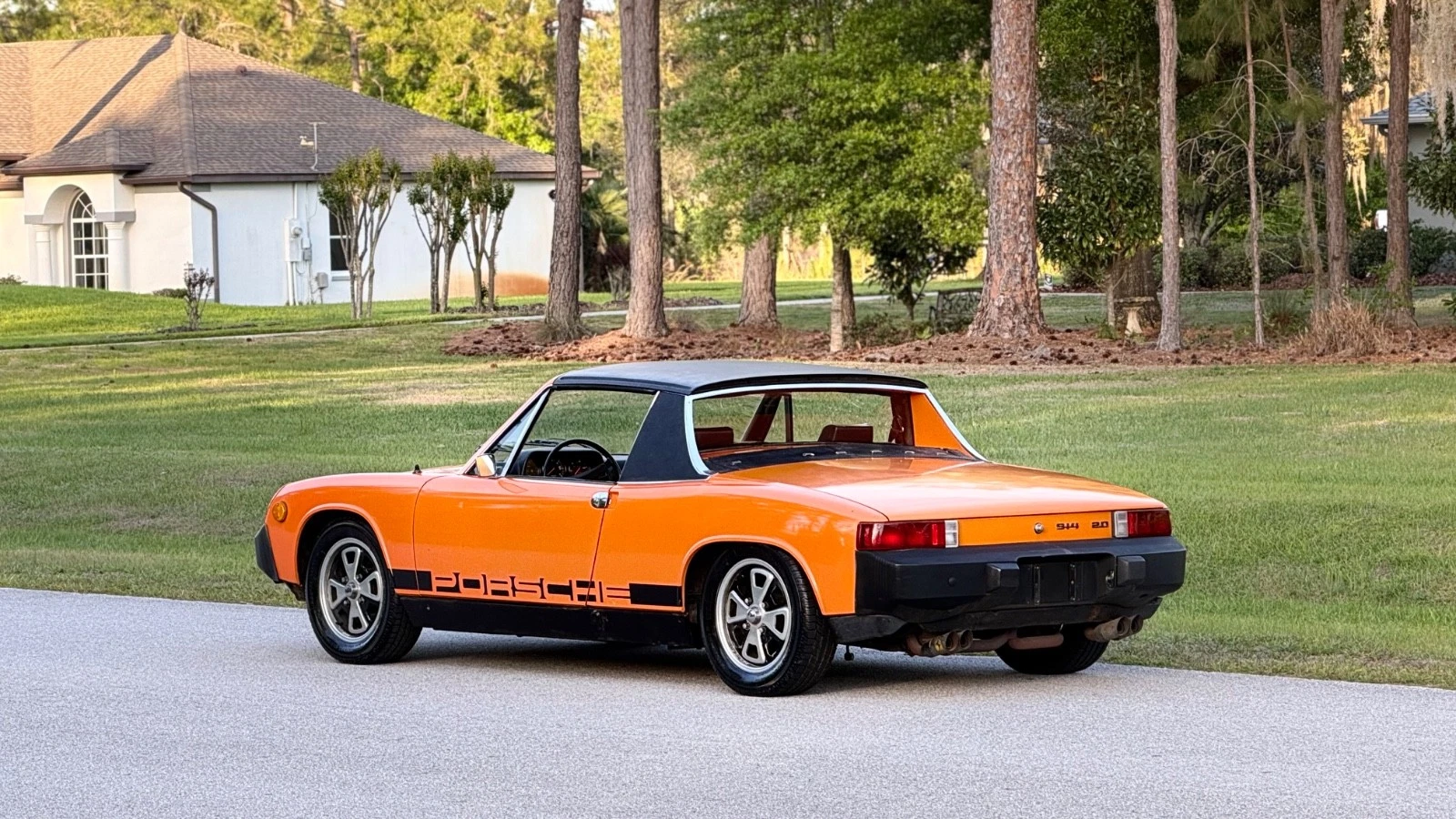 While most buyers want to see what’s under the “hood,” it’s a fairly tough go in a 914 due to its mid-engine architecture. This car, being from the final year of 914 production, has the 2.0-liter flat-four, which was (close your ears if you don’t want to know) based on a Volkswagen engine. In US trim, the four put out 84 horsepower and ran it through a five-speed manual transaxle, enough to ship the 914 to sixty in about 11 seconds. That’s really not bad at all for 1976, and when combined with the 914’s excellent handling and four-wheel disc brakes, its no wonder that so many 914s saw track time. Can you imagine autocrossing one of these? It would be a blast.