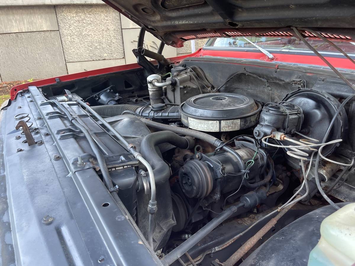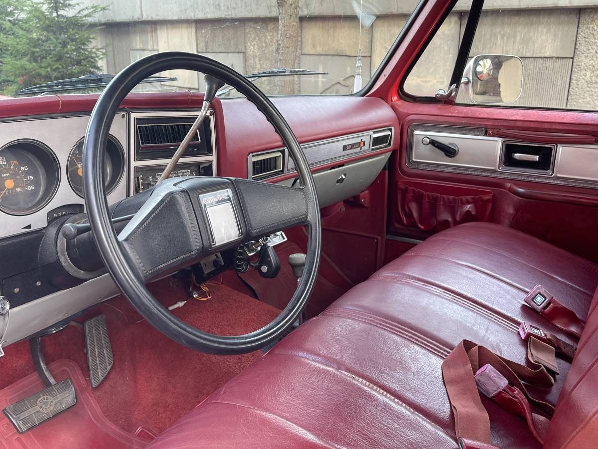 Ah, maroon – without this color on the inside, it’s only half a truck. The seller reports no issues from the cabin, but he doesn’t say much about the truck’s condition in general. Still, with 69K on the clock, you’d expect this GMC to be in fairly good shape inside and out. The bench seat isn’t torn and the door panels appear sound, and even the map pockets are still “hanging” in there. The carpets appear clean and there’s a period-correct CB radio hanging from the dash. No word on whether the GMC came with air conditioning, but it likely wasn’t needed in the Pacific Northwest, so it wouldn’t surprise me if it didn’t have this comfort feature. The dash is cracked, sadly, and combined with the faded paint, it seems likely the truck spent some time outdoors.