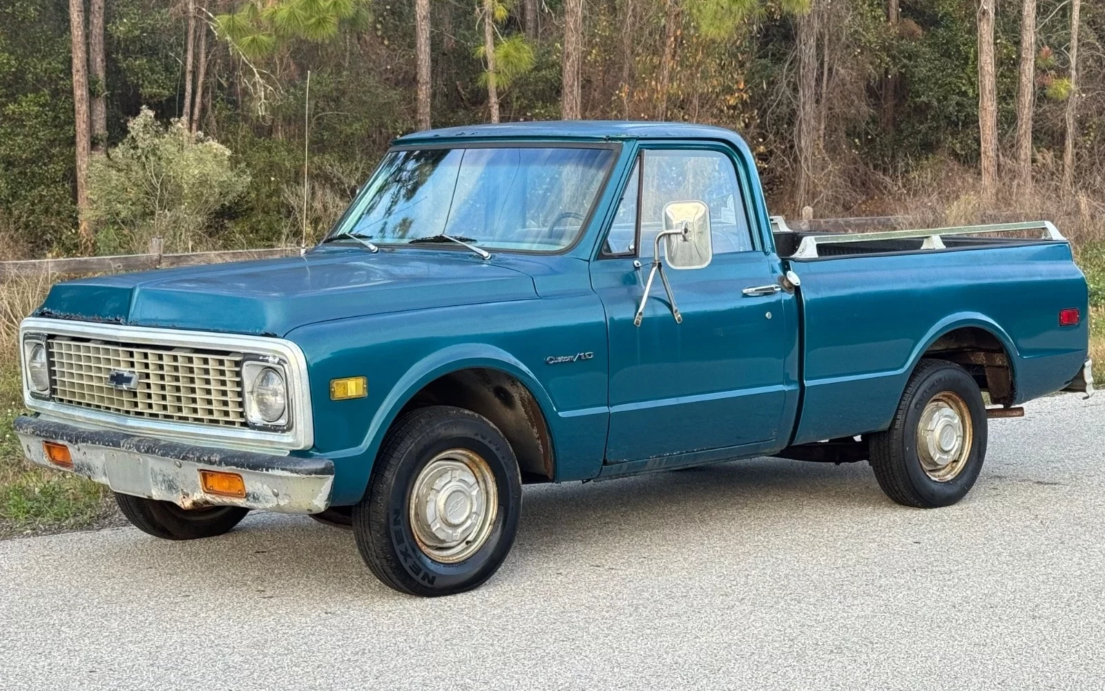 If you’re like me, you’ll never get tired of seeing old farm trucks on the pages of Barn Finds, and we like them all the better when they’re of the one-owner variety. This 1972 Chevy C10 was bought new in Denver, Colorado, and it spent most of its days on the farm before moving with its original owners to Orlando, Florida. It’s now being offered on eBay in Clermont, Florida, with no reserve and only 90,000 miles on the odometer. First-rate Barn Finder T.J., who is also clearly a fan of farm trucks, sent it our way so we could all imagine how much better our lives would be with a ’72 C10 in them. The high bid is currently $4,550.