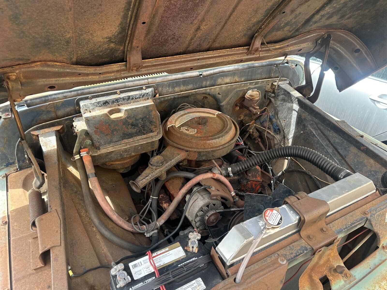 The dependable Chevrolet powerplant still fires up and allows this C20 to mosey around the property as needed. It looks like it has some freshening up in the form of a new radiator and battery, and perhaps a hose or two as well. I’d love to know if the Chevy was in steady use all of these years or if it fell dormant in the recent past. Either way, it looks like a sweetheart of an old rig with the kind of patina you just can’t fake – and you’ll never do better than having just one owner.