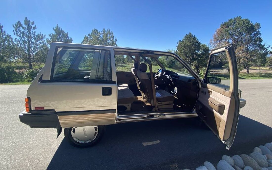 Wow – I have never seen these – but, in the ’80’s, with the doors closed, like in traffic, you wouldn’t know it’s a “mini mini van” – and 4WD too? How did the owner – in Colorado, of all places, keep the rust away? I had to look at the Craigslist ad, which showed/confirmed that the engine is a 2-litre, so you aren’t underpowered (relative to a 1.6 Corolla, for example), and the rear windows on the rear sliding doors go down too, and something else I have never seen is the speakers at the rear are set into the headliner..this thing is like part Subaru, part AMC, part Renault, and too perfect to modify – the pics of the undercarriage show it’s clean enough to eat off of – unbelievable. It’s a 5-speed, with front-wheel drive until you select four wheel drive, and a nice big greenhouse for sightseeing and toting…maybe order an OEM roof rack (to keep the interior nice), and off you go to Pike’s Peak…Note: I’m not sure why the timing belt would have been replaced in a service by the dealer in 2013, except maybe from age/lack of use – like tires, right? Speaking of which – check those date codes, etc. The only sadness is that if you drive it “for real” it will never stay as nice as it is now, but hey, maybe use it as a ‘tow-behind’ on a motor home, with a cover or something…anyway, as always, why don’t they make something like this again – that doesn’t cost $50K, and what this country needs is a good 5 cent cigar.