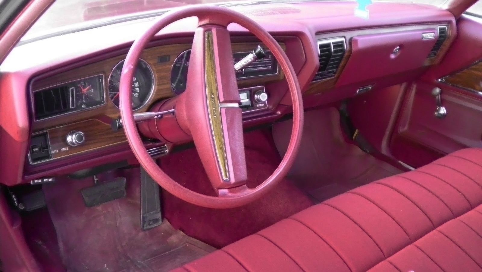 Now that’s a red interior! The interior looks great front and rear. I don’t see any flaws at all but they mention that the passenger side window is hard to roll down but it works. Buick made 57,512 two-door Regals in 1974, down over 30,000 units from the 1973 model year. NADA is at $2,925 for an average value and $5,050 for a high retail value.