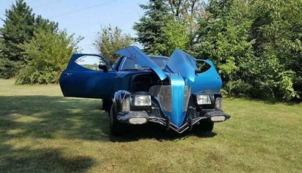 Well I see imagination and skill in this vehicle (my dad would have called it an abomination) but I see artistic use of junk yard parts that can be licensed and driven. To me it’s not an eyesore, but one mans use of what he had to build a cartoon car. There are things I really like about this car, like the use of the tailfins ands other such things. May everyone put their dreams to use to build what they have, regardless of other peoples opinion. Those kind of people are the ones that make big progress in inventions.