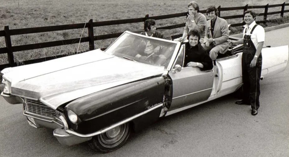 As it turns out, “One Piece at a Time” would be Johnny’s last Billboard Hot 100 hit. To help promote the new tune, Cash’s crew hired a Nashville auto shop to build a Frankenstein-like Cadillac. The result was the product you see in the second photo. It was destroyed in 1977, perhaps because it wasn’t a drivable automobile. This may have been what inspired Oklahoma car collector Bill Patch to build his own Coupe De Ville out of salvaged parts. But he didn’t do it for himself: he gifted it to Johnny, free of charge.