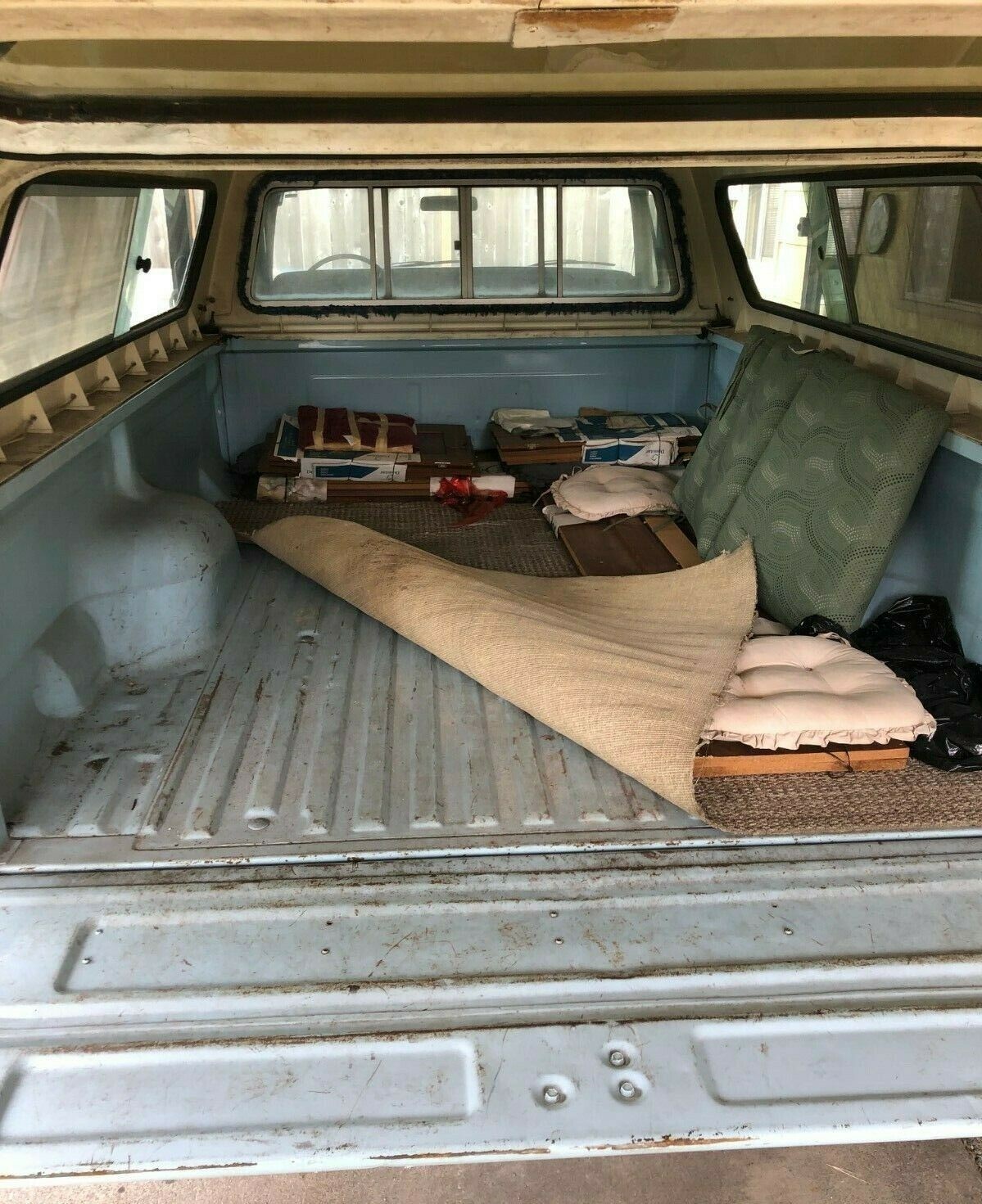 The truck looks great inside and out, including the canopy (aka bed cover) that was added by the dealer when new. As a throwback to the era, there is an 8-Track tape player built into the bottom of the dash. Overall, the interior looks to be in great shape and may be original right down to the carpeting. When you get it out on the highway, you’ll feel a slight bump in the ride that the seller attributes to old tires. He believes that two of the Bias-Ply donuts are original, which would be amazing given the mileage on the truck. So, inspecting or replacing anything made of rubber would be a good idea. The brakes may have been redone more recently.