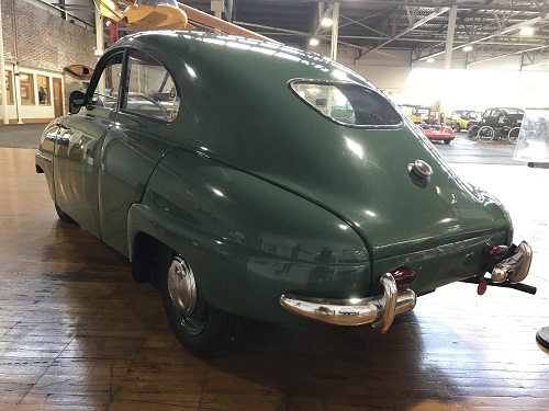 One of the very 1st cars I drove was a Saab 92 or 93, early 60’s maybe. My parents had friends in Mass. and they had Saabs. It had been sitting and my brother and I got it running and drove it around their big yard. It had the 4 speed on the column, and I remember, the gearshift, which was worn, would go almost half way around the wheel, and a “James Bond” smoke screen behind. It was fun, until we actually rode in it on the road, and found out how gutless it really was. So under powered, with passengers, it wouldn’t hold 4th gear, and they drove around in 3rd. Sorry, I like 2 cycles in certain vehicles, but not in cars. I wonder if an old Saab would even be allowed in California? Interesting find, but the newer 96’s were much nicer cars. I’d love to have a 96, this, not so much.