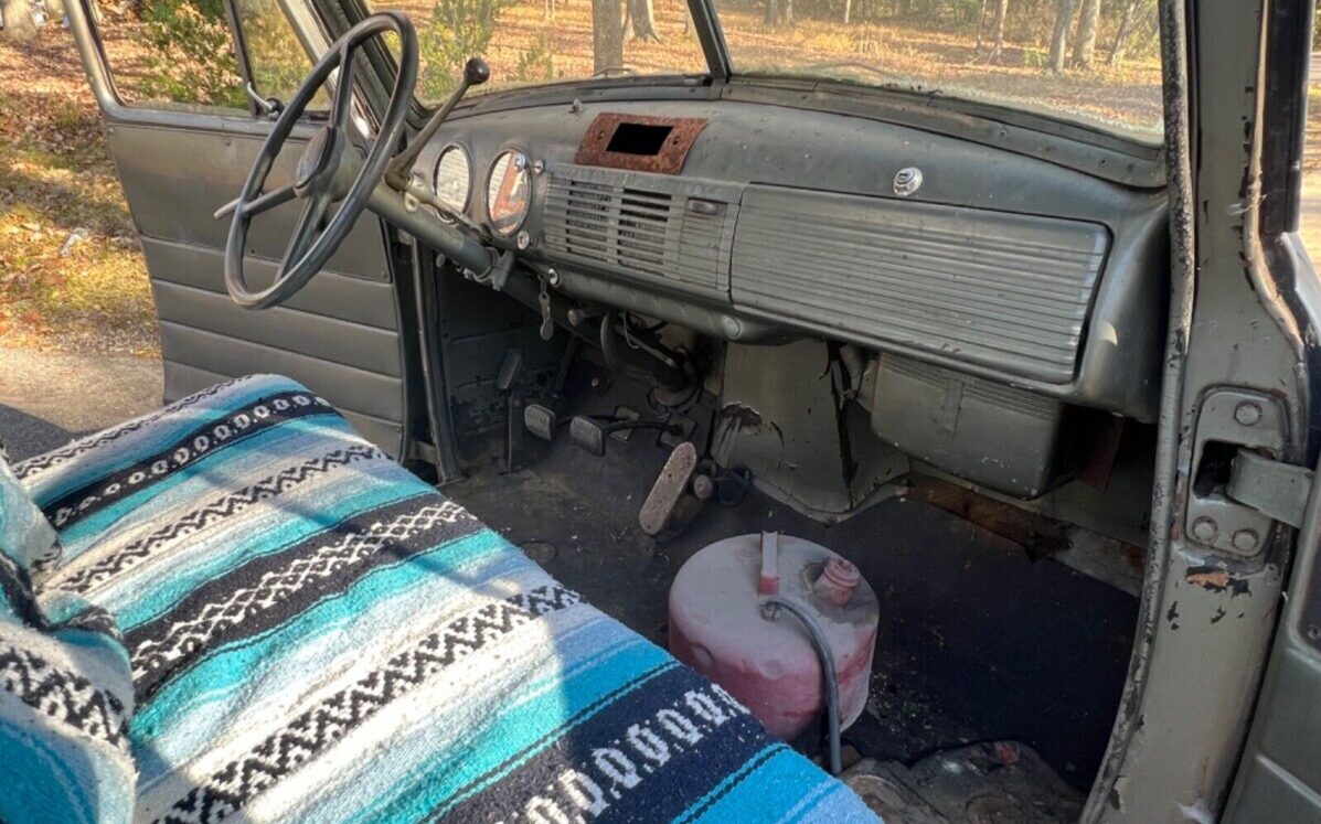 The interior is a bit scruffy and is equipped with what seems like the obligatory Mexican blanket seat cover that so many of these old trucks prefer as seating upholstery. The upper door panel on the passenger-side door is missing as is the radio but the remainder is about what one would expect. I’d like to get a better look at the floors but the torn rubber mat is obscuring most of it. Generally, I don’t encourage driving around with a fuel can positioned on the front floor but in this case I imagine that it’s feeding the engine.