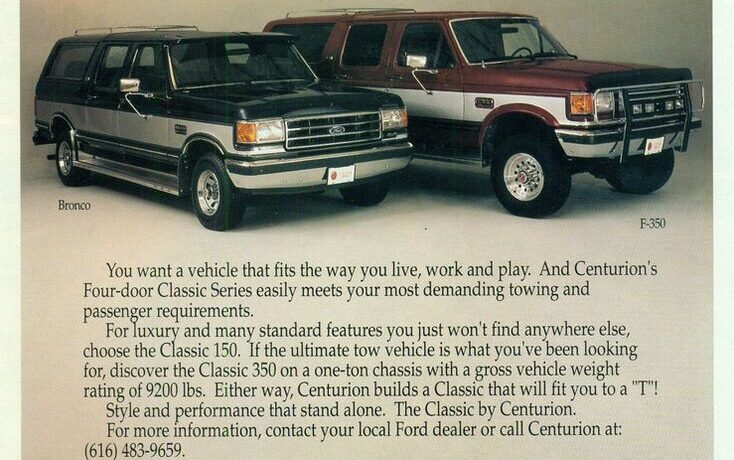 Here is a period ad for the Centurion. After the discontinuation of the Bronco in 1996, the Centurion as we knew it ceased to be made. Ford wouldn’t have a one-ton SUV in the market again until the Excursion was introduced in 2000. Overall, these are pretty neat vehicles that are rare enough that most people don’t know they exist. What do you think of the Ford Centurion?