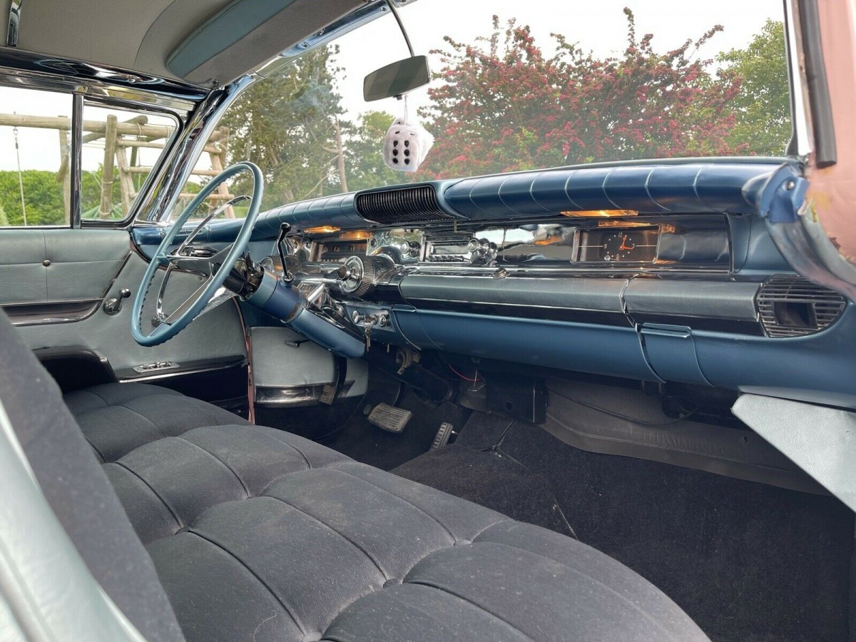 Not crazy about the pink, but its the original color for the car and I wouldn’t change it for that same reason. I get the grey interior, but the blue dash and steering column strikes me as odd
