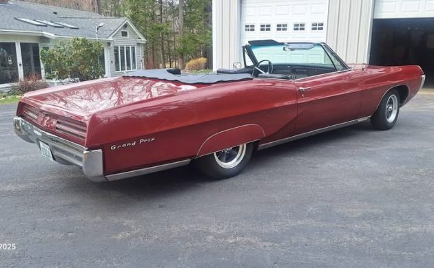 Any sixties vintage Pontiac Grand Prix is a neat find, but this 1967 Burgundy (Code N – assuming that the paint is the original shade) example is special because of its convertible body style – a one-year-only variation from the standard two-door hardtop. Richard in Maine discovered the listing for this Moultonborough, New Hampshire, domiciled rag top, and it’s available here on Facebook Marketplace for $32,500.