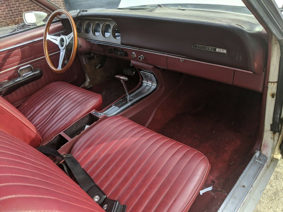 Lifting the hood reveals what makes this Cyclone so special. What we find is the 428 Cobra Jet V8, and this one features the Ram Air option. Officially, the Ram Air did not add any extra power to this monster. However, I believe that claim about as much as I believe that pigs might fly. In addition to this beautiful V8, the CJ comes equipped with a 3-speed C6 automatic transmission, power steering, and power front disc brakes. Mercury claimed a conservative output of 335hp for this engine, with or without Ram Air. Whatever the truth of the matter on outputs, Mercury’s performance claims were also slightly on the conservative side. They quoted a ¼ mile ET of 14.8 seconds for an automatic Cobra Jet. The reality was markedly different because contemporary tests by motoring journalists easily achieved sub-14-second time for the same car. Of course, those sorts of figures were also enough to cause insurance companies to develop a bad case of twitching. Therefore, understating performance figures was a common practice at this point in time. The good news here is that this Cobra Jet is both complete and original. It is also said to run and drive, and it seems that it could be driven and enjoyed immediately.