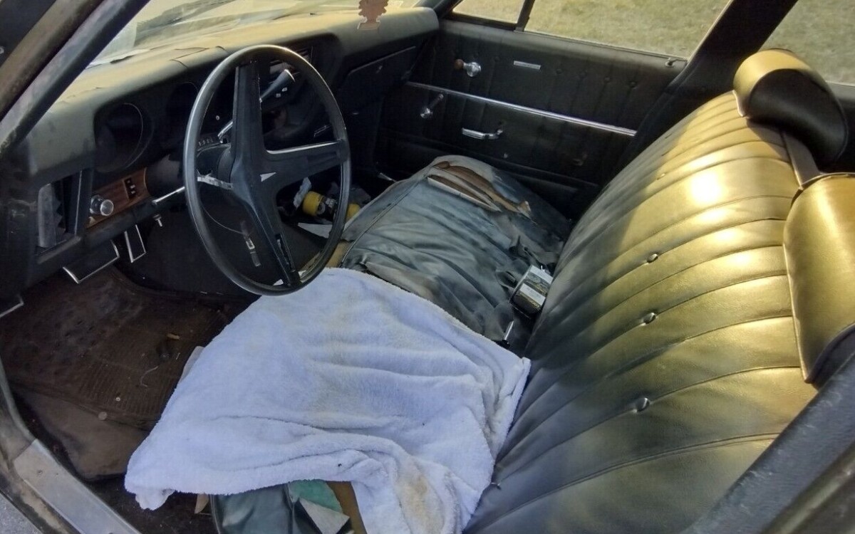 This is one of those cases where we get very little background information on the vehicle, but even though it’s got a few scuffs and dents the body doesn’t really look all that bad overall, and if the wagon’s been in Cali for a long time maybe it’s pretty solid. No photo of the engine compartment is provided, but it’s said to have a 350, the largest motor you could get. It was offered in 2 varieties, with the base 350 producing 265 horsepower, or you could step up to the 4-Barrel higher-compression powerplant and have 330 horses. It’s not specified which is under the hood, but the seller says the motor’s healthy and runs perfectly.
