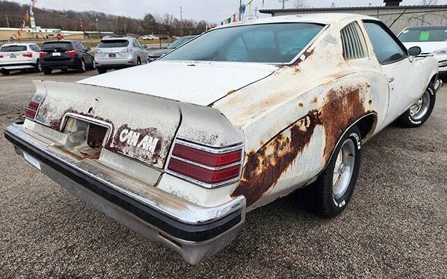 This was the last year of this body style, not worth the expense to tool up a new mold. The Can Am was introduced in January 1977, and production continued for about 6 months until the mold broke. Pontiac execs weren’t happy the Can Am cut into the more profitable Grand Prix sales, and with the 78 models being introduced in August/September, they just cut off production. Too bad, I liked the look of these cars, although I believe they would look better with the original Rally ll wheel paint scheme. This one is just sad. $8500? Limited availability of restoration parts? Buy a better one!