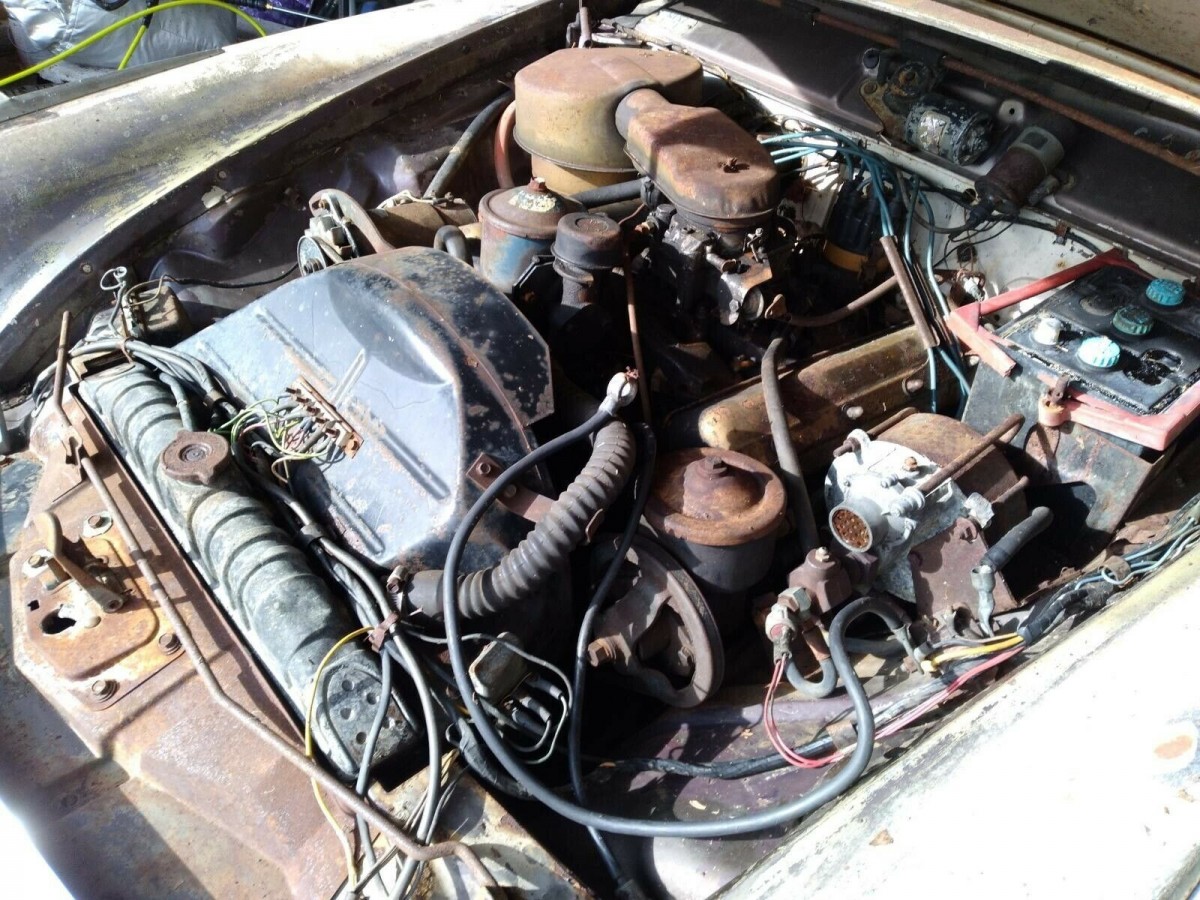 We’re told this Speedster has been in California all its life and has been sitting since the 1970s, with the reason for its hibernation not mentioned. It looks to have come to rest in a partially enclosed structure, but that may have only been for two years given the seller’s tenure with the car. The body looks be straight and most of the chrome pieces may be there. There is some rust underneath one door and in the fenders. The floors and all are said to be solid. The cow-catcher front bumper is mighty rusty.
