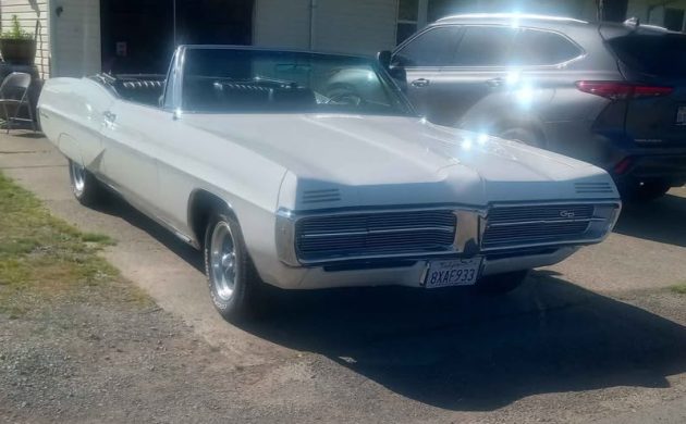 The seller is light on details about this treasure, though not so on photos. The car comes with a 400 cubic inch V8 (4-barrel carburetor, we assume), which had replaced the 389 after 1966. And the drop-top comes with a 4-speed manual transmission, which, if original, would make the ragtop supply even smaller than it already is. The indicated mileage is 59,000, which suggests the car has spent a lot more time in the garage than on the road.