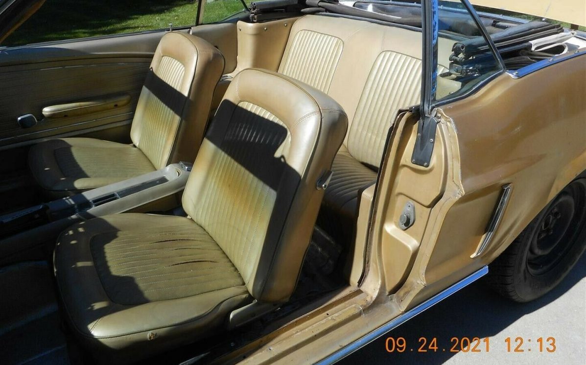 Ten to twelve years ago, this Mustang’s 230 gross HP, 302 CI V8 was rebuilt and the seller claims that the engine does turn over and is in possession of most of its original and correct parts though the distributor’s internals are missing – two additional distributors are included. The automatic transmission, however, sounds like it’s going to need a rebuild. The seller adds NOTE: There is no suspension or steering on the car. I have a straight axle on the front to facilitate loading”. The suspensions parts, all listed as new, are included but they’ll need to be installed.