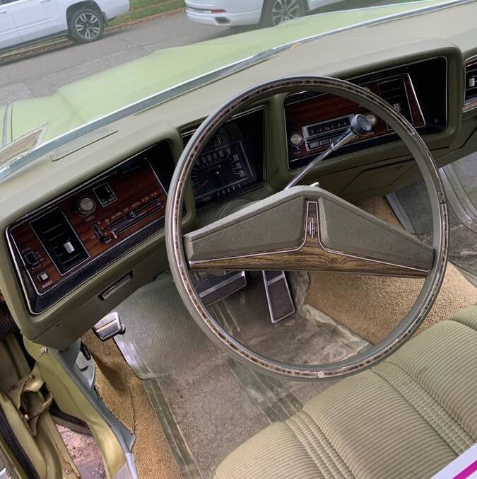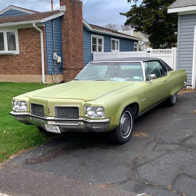 Not my favorite color either. But in the late 60s and especially early 1970s earthtones were popular and green cars were found in every dealership. People put green shag carpeting in their homes too. Color aside, the Olds 98, Cadillac DeVille were roomy, smooth riding and had large displacement high torque like the vehicle for sale.