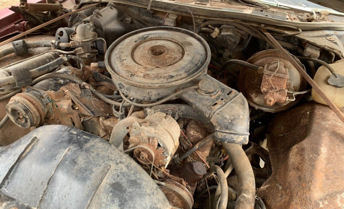 Pontiac’s intermediates were little changed at the mid-point run of the mid-70s generation. As best as we can tell, the LeMans GT was sandwiched between the LeMans Sport and the Grand Am. The GT may have been a badging exercise as the seller’s car doesn’t have bucket seats or a console. A 350 cubic inch, non-functioning V8 resides under the hood, probably with a 2-barrel carburetor, and the engine compartment is almost as rusty looking as the rest of the auto. The 455 V8 was no longer available, reserved only for the Grand Am.