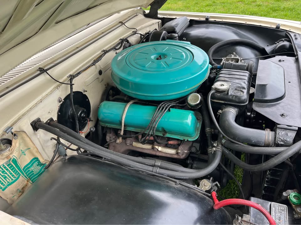 Being a Ford in almost everything but name, the engine compartment will look familiar to anyone who’s seen a 1960 Galaxie. This Ranger had “high-stepping performance” with three engine choices, the top dog being this 300-horsepower “Super Express” 352, which was a $230.80 option. Doing the shifting was the optional “Dual-Power Drive” three-speed automatic, which was the same Cruise-O-Matic you’d find in a Galaxie or a Thunderbird. The seller says that this Ranger has been restored, although I’d say it was done some time ago. Notice the air conditioning compressor; it appears that someone at some point added an aftermarket unit, which will be nice if you’re enjoying your Edsel in those Missouri summers. Also notice the neat “Edsel” windshield washer bag located on the passenger-side firewall, a rare piece for certain.