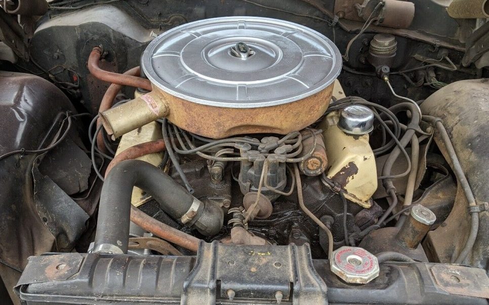 Another cool BF’s blast, my friends dad down the block, had this exact car. It was no barge, and had plenty of mid-60’s muscle. These were Fords best cars, I feel, but only the untrained would agree on the mileage. I hate to keep bringing up price, but it’s a major deal when considering a car like this, that will need everything. I’d think a nice one could go for $10g’s and no bids bolsters that some. Air cleaner is correct, I think they used an aluminum top on some, like 390 police models, and the 352 was one of their best engines, this one, however, looks pretty tired. I swear, it’s almost comical how some people ordered their cars. Now, a LTD was the upper end, but no power brakes or radio, what gives, pops?