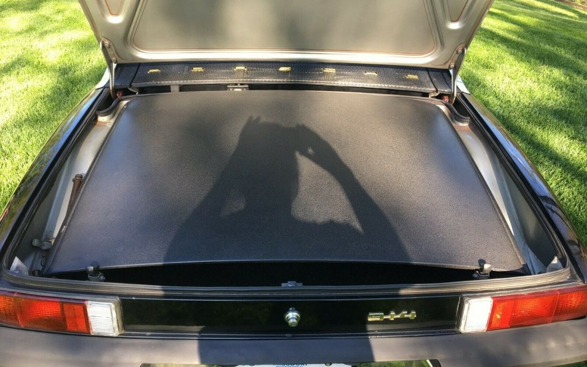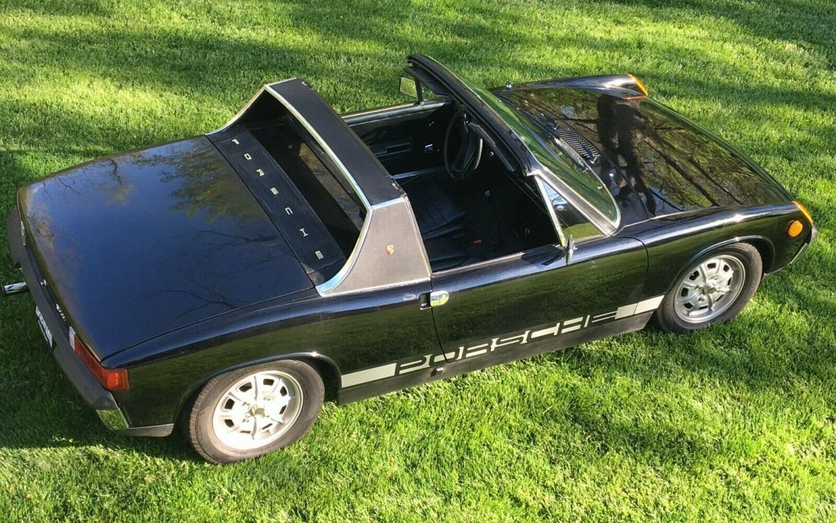 This 914 has been in the seller’s possession for about two years and it presents well. He states, ” It has had the lower rocker panels replaced with fiberglass ones as the previous owner said that they had rust on them so he purchased the fiberglass rockers but never installed them. Longs look good. This car, like old VW and old Porsches’, marks its territory, not bad, it’s normal“. Based on the images, it’s hard to nit-pick; black is unforgiving as far as showing imperfections but the numerous exterior images don’t fly any red flags. Black, however, isn’t this car’s born-with hue, it was originally silver but was repainted in the ’70s. Nevertheless, it still qualifies as an aged finish. The seller adds, “it looks nice but is showing its age“. The removable Targa roof panel, however, doesn’t look its age, it’s in excellent condition!