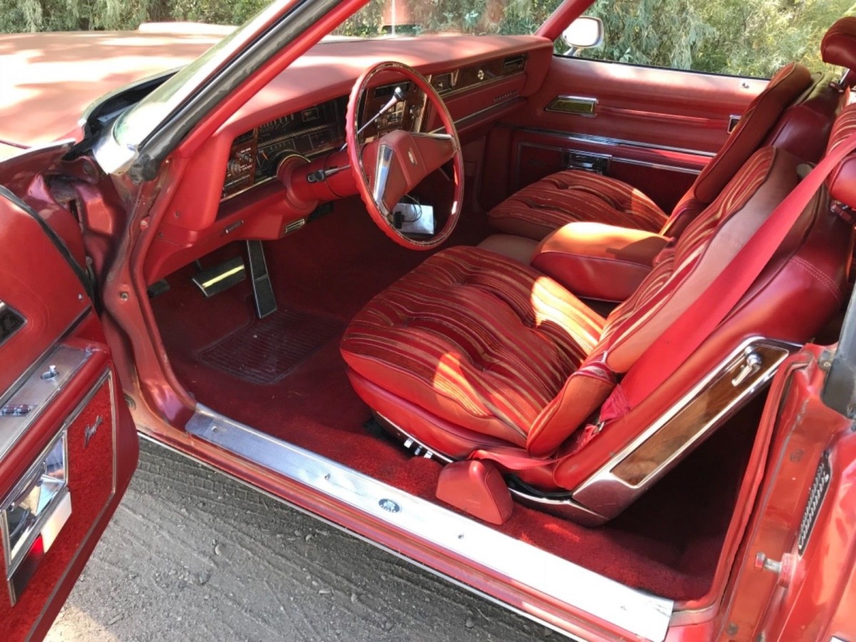 The front of the Toronado received some minor updates for 1977, including moving the parking lights from the fender tips to under the headlights. The rear design was pretty much carried over from 1976. The seller says the paint on the car will need to be buffed or possibly repainted. The vinyl landau top appears to be in good condition. The car will also soon need some new tires.