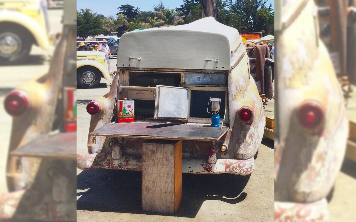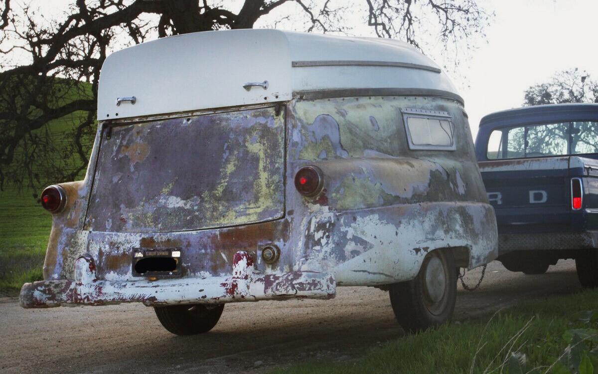 Just when you thought it couldn’t possibly get any better, check out the cooking area on the back. It looks like this one has an icebox on the right side. And those taillights. If the rear end looks familiar, it’s because it was based on the 1952/1953/1954 Ford and there were reportedly fewer than 20 of them made with only around a handful of them still in existence today. I think that this would be the ultimate camp/boat trailer to have, which is something that I have never said before. I never thought I’d want a combination camping trailer/fishing boat as much as I do right now.