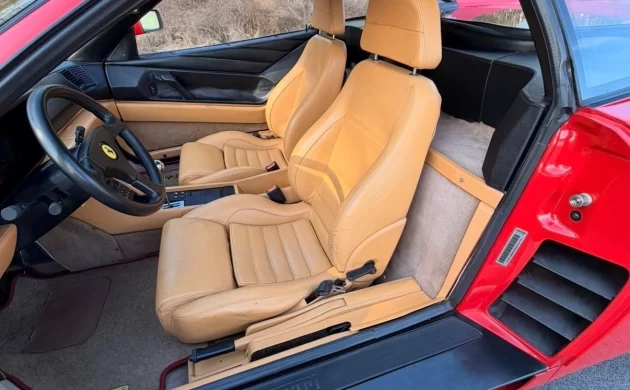 Like most mid-engined Ferraris, these cars require an expensive engine-out service to replace belts and other consumables. The seller confirms he had this work done about 5,000 miles ago, with the 3.4L V8 showing just under 50,000 miles today. When new, it pumped out a healthy 300 horsepower and can reach 60 in about 5.6 seconds. The seller has added a Tubi-style exhaust and aftermarket wheels, but I’d swap the original alloys back on before too long; these look too big for the short wheelbase car. The 348 will someday be a six-figure car, in my opinion, so get one now while prices are safely below $100K.