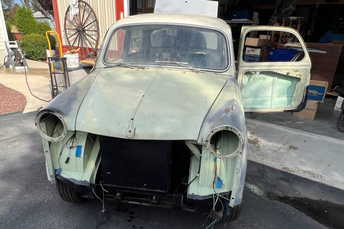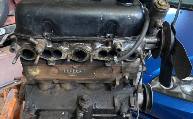 Rust apparently wasn’t a big issue, and the car was sandblasted and those areas corrected. The undercarriage was primed and undercoated. The interior may be okay with the seats having been reupholstered. We’re not quite sure where the car stands as to work remaining, but you’ll have to have a trailer to carry it all home. The seller would consider a trade, such as a pickup, Jeep, van, or motorcycle, in running condition.