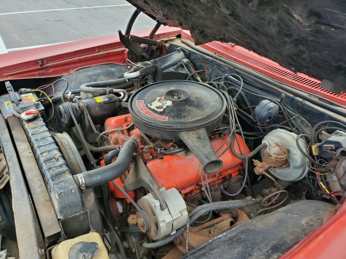 While not pristine, I’m enthused by this engine compartment. To begin with, you can tell the engine was running as the alternator fan blades are a blur. Almost all of the wiring looks original and it’s nice to see an original air cleaner assembly for once. I can’t see any reason not to recommend this survivor, can you?