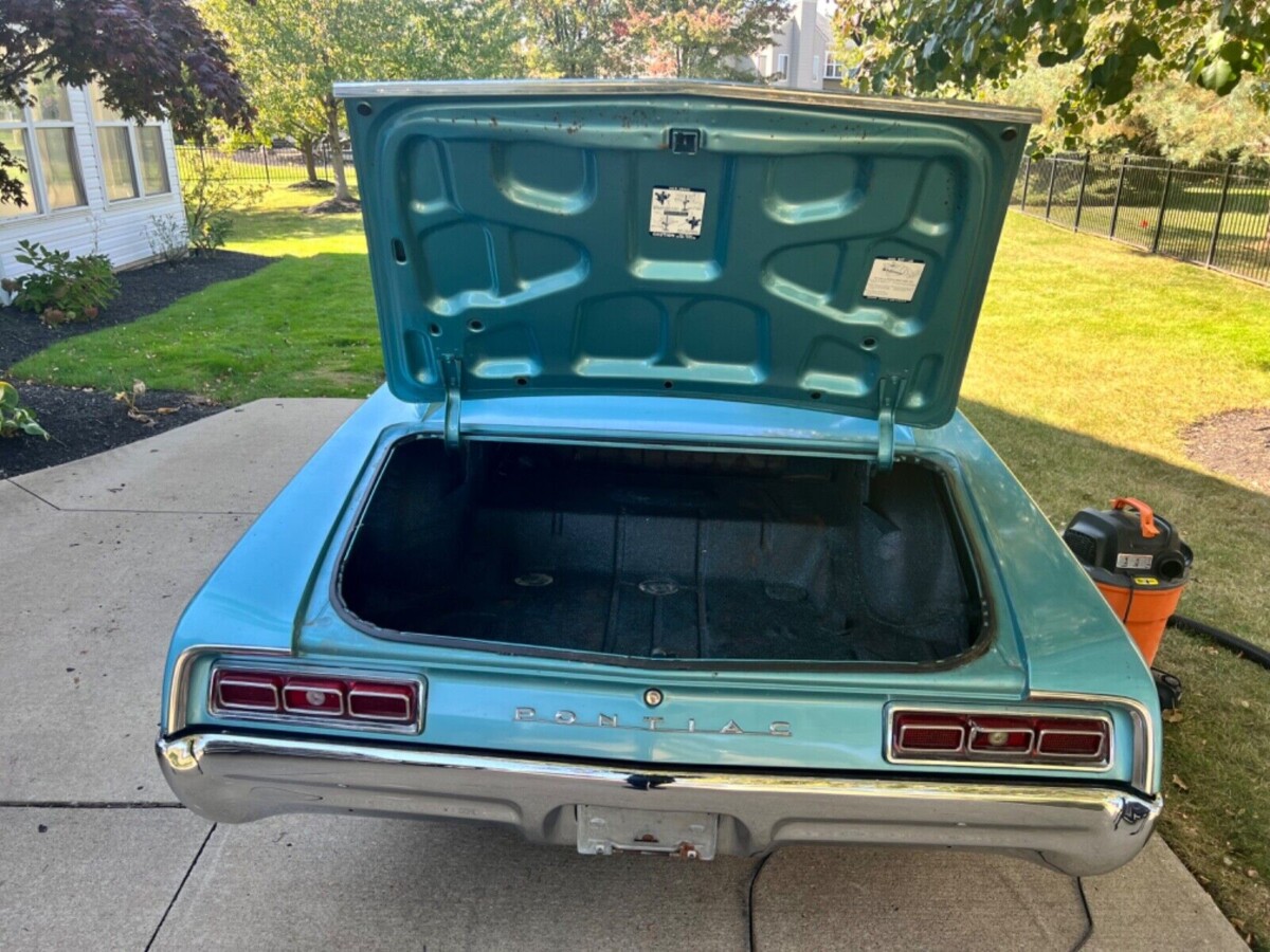 This car could very well be all original. It certainly looks like it on the paint side (or is that a bit shiny?) and in the interior. The undercarriage has some dusty, cobwebby-looking stuff, but the car was found in a garage, after all, after sitting there for fifty years. That time lag could account for some grunge, though things look generally rust-free, so the garage mustn’t have had a dirt floor, or featured a moist environment. I am slightly intrigued by the interior of the trunk in this regard. I’ve owned two of these exact cars—a 1967 LeMans and a Tempest, both original and unrestored, and my memory tells me that the trunk paint was not dark like what’s in this car. Maybe it’s the image, but I’d need to see another shot to buy the originality claim. Same goes for the fact that the undercarriage appears to have been painted black in spots. This needs some ‘splaining. But look at the floors, which were apparently photographed when the carpet was changed. Like brand new. I wonder if the seller found the buildsheet when he stripped out the old rug? Mine was under the passenger’s feet on my Tempest. I never looked for the one in the LeMans, because I never had the need to replace the carpet.