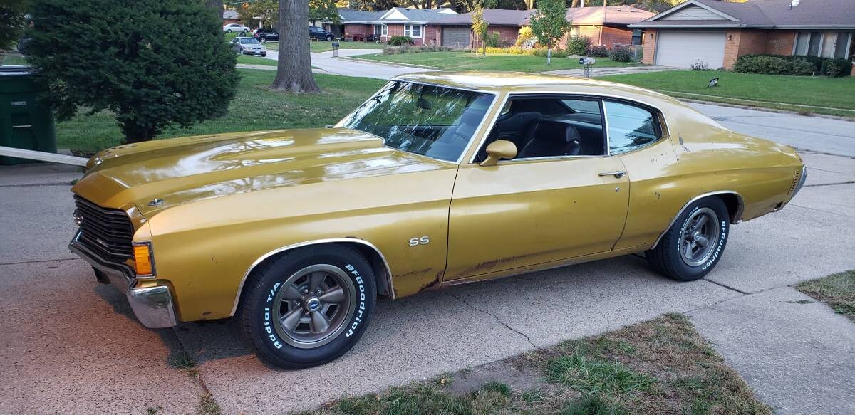 Bought a 71 SS midnight bronze with white stripes and black interiors for my wife 402 auto,said 396 but we all know about the engine change from GM. 71 was a dog compared to my two 70’s..Only had a two car garage so I hogged both bays for my 70’s.Wife not a happy camper.